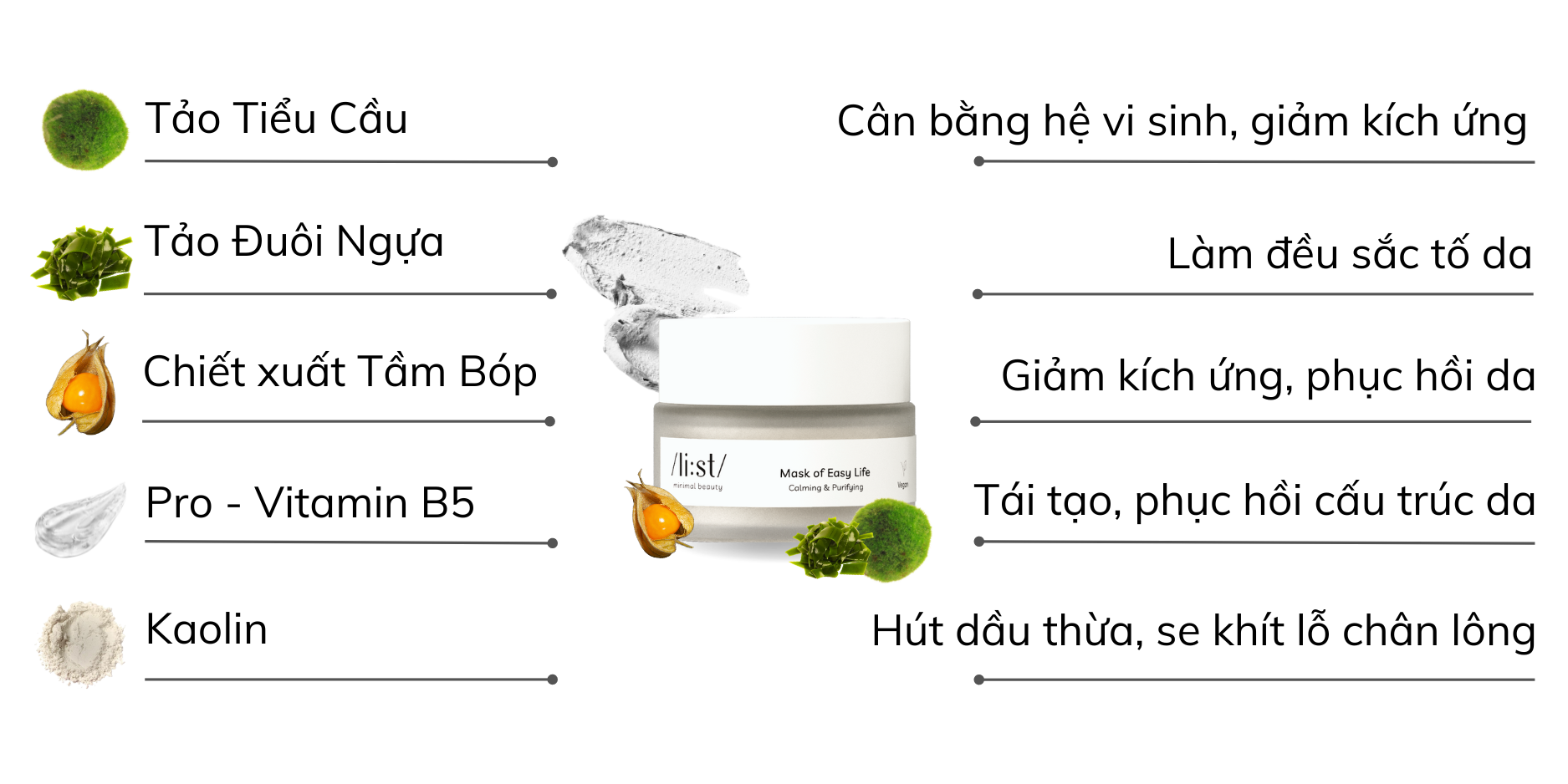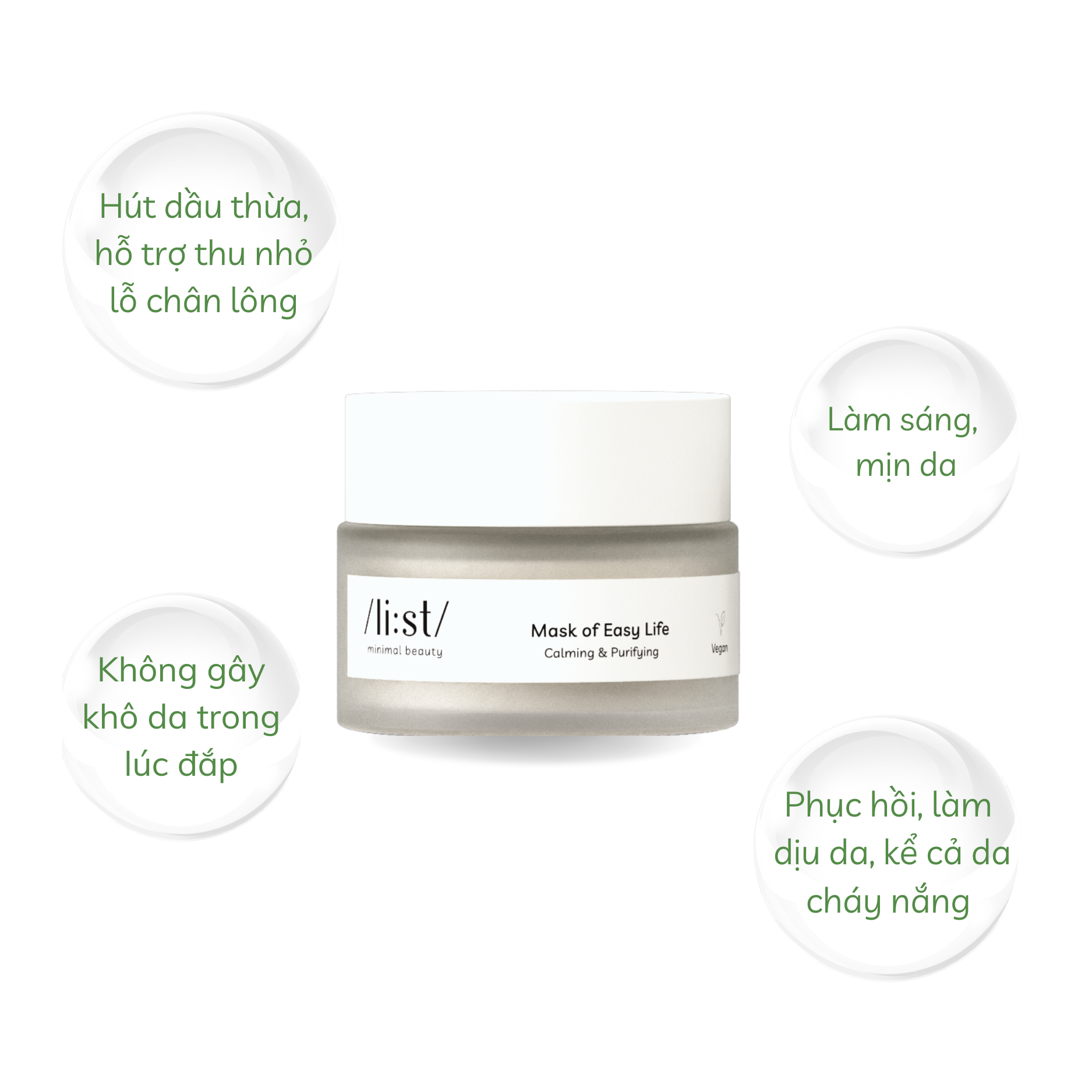 Mặt Nạ Đất Sét Tảo Biển Li:st Hút Dầu Thừa, Phục Hồi, Cân Bằng Vi Sinh Và Không Gây Khô Căng Mask of Easy Life 30g