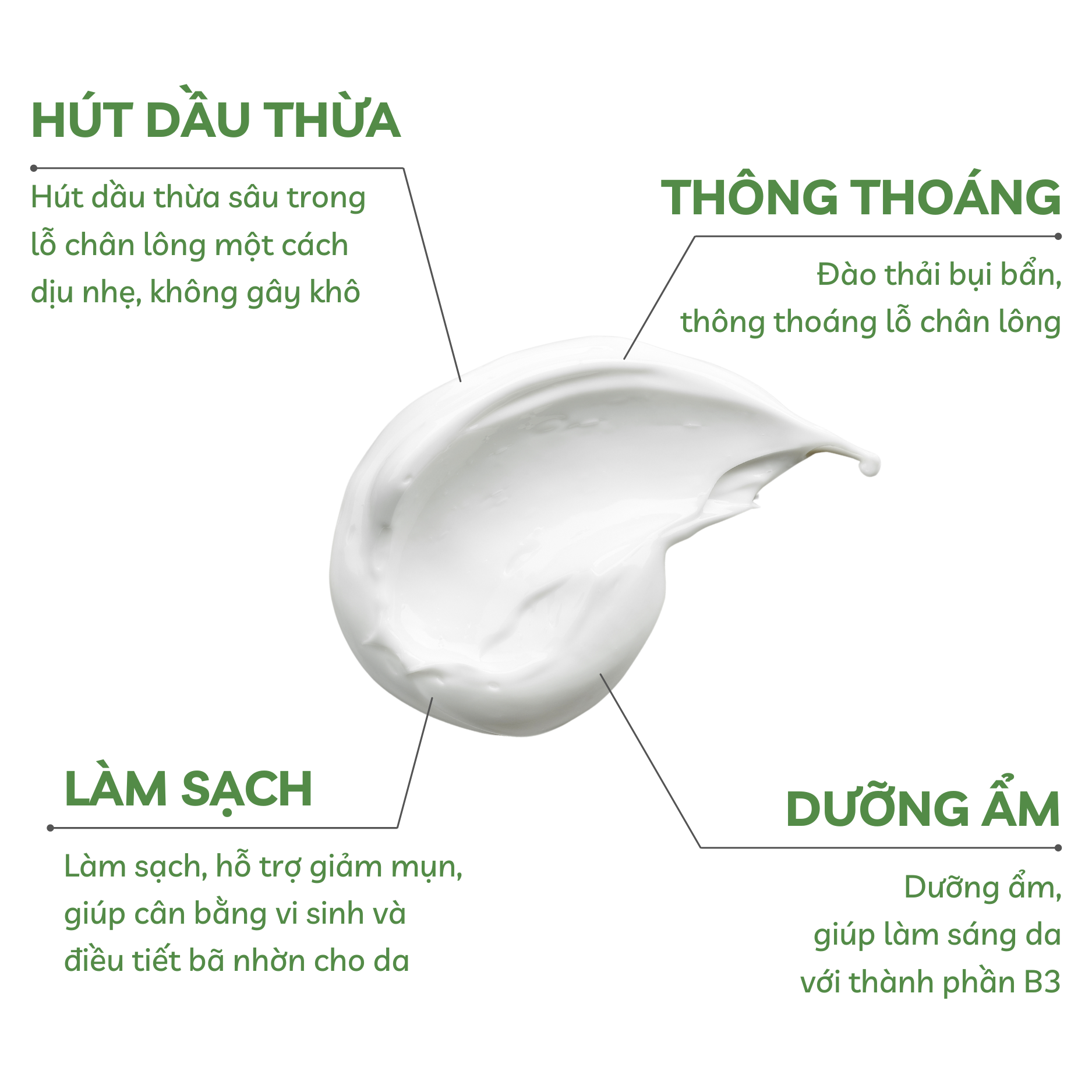 - Kaolin: hút dầu thừa, độc tố, điều tiết bã nhờn, hỗ trợ giảm mụn