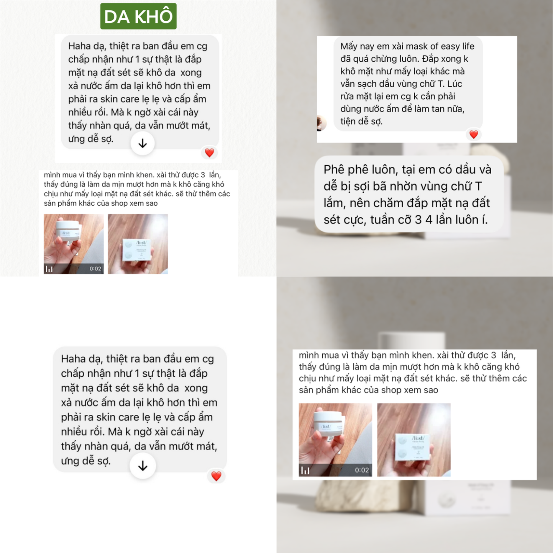 ⚪ Mask of Easy Life là một sản phẩm chăm sóc sâu cho làn da, có tác dụng rõ ràng ngay sau khi sử dụng. Là một sản phẩm chăm sóc toàn diện: hút dầu thừa, làm thông thoáng lỗ chân lông, cân bằng vi sinh và phục hồi làn da. Cùng với thành phần lành tính từ thiên nhiên, phù hợp với mọi loại da, kể cả da nhạy cảm, da mẹ bầu, bỉm.