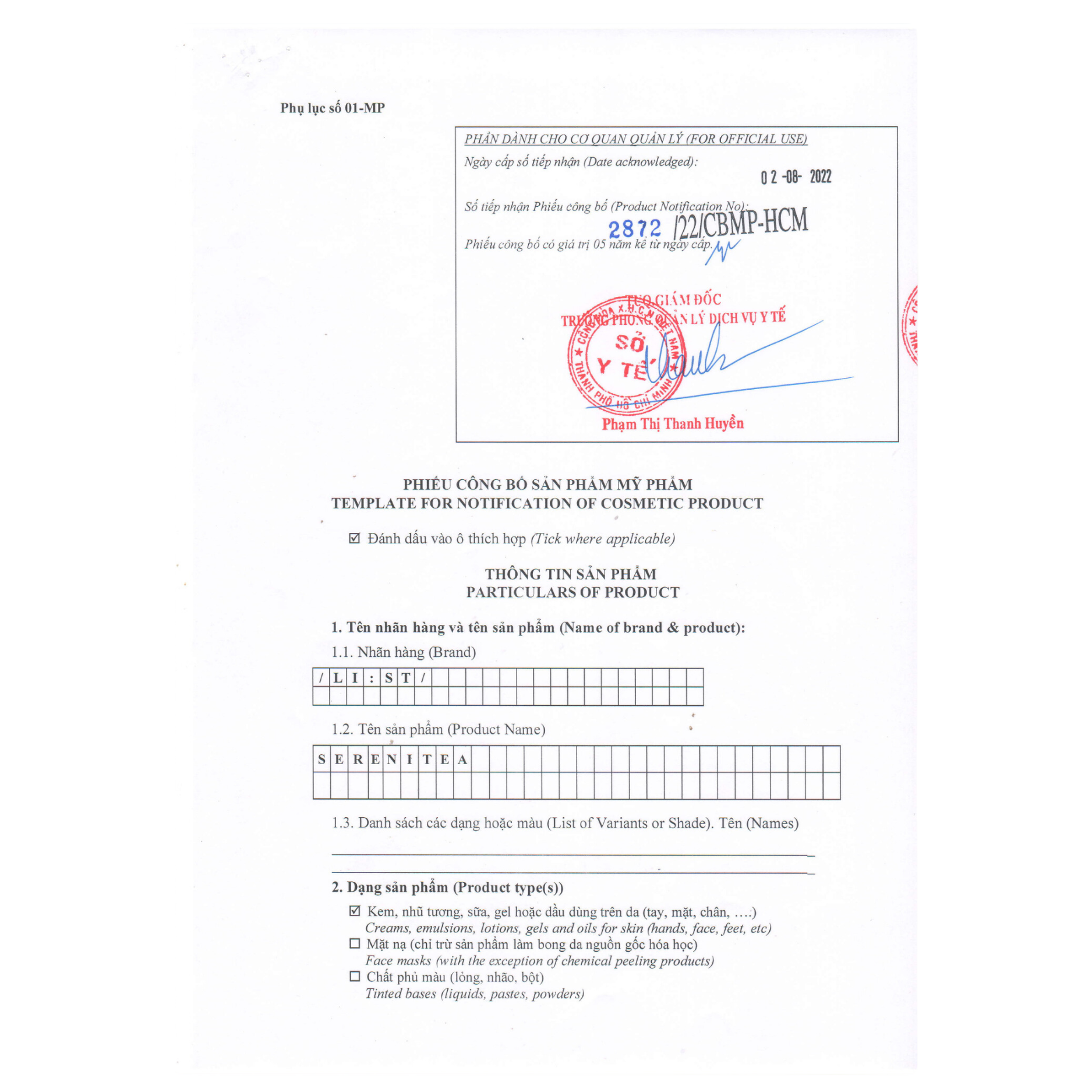 Serum Cân Bằng Vi Sinh Li:st Phục Hồi, Cấp Ẩm, Làm Trắng Sáng Da Và Chống Ánh Sáng Xanh SereniTea 30ml