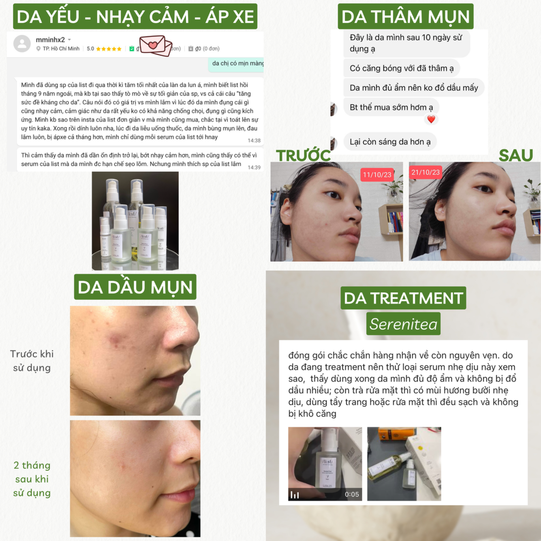 ⚪ Serum SereniTea là dòng serum dưỡng da với tiêu chí "cân bằng". Sản phẩm có thể thay thế cho các bước dưỡng da thông thường: toner cân bằng da, serum dưỡng ẩm, serum làm sáng da, serum phục hồi, serum chống lão hoá, kem dưỡng ẩm và kem mắt. Cùng với thành phần lành tính từ thiên nhiên, phù hợp với mọi loại da, kể cả da nhạy cảm, da mẹ bầu, bỉm.